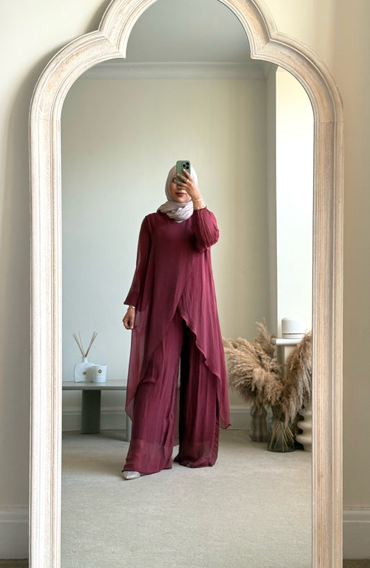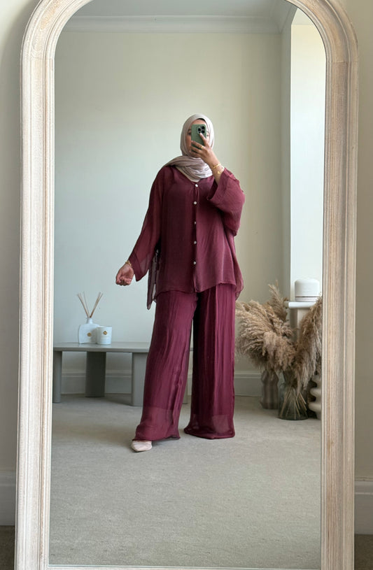 Riya Silk Blend Shirt Co-ord set - Maroon Red