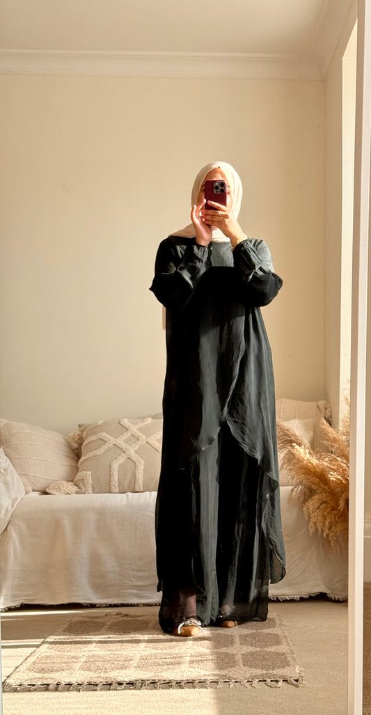 Ariana Long Co-ord Set - lined sleeves version Black