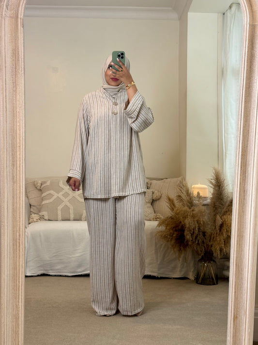 Amaya Linen Look Striped Co-ord - Beige