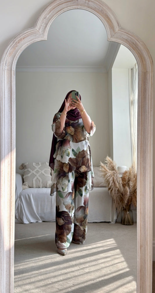 Ari Co-ord Set - Brown floral